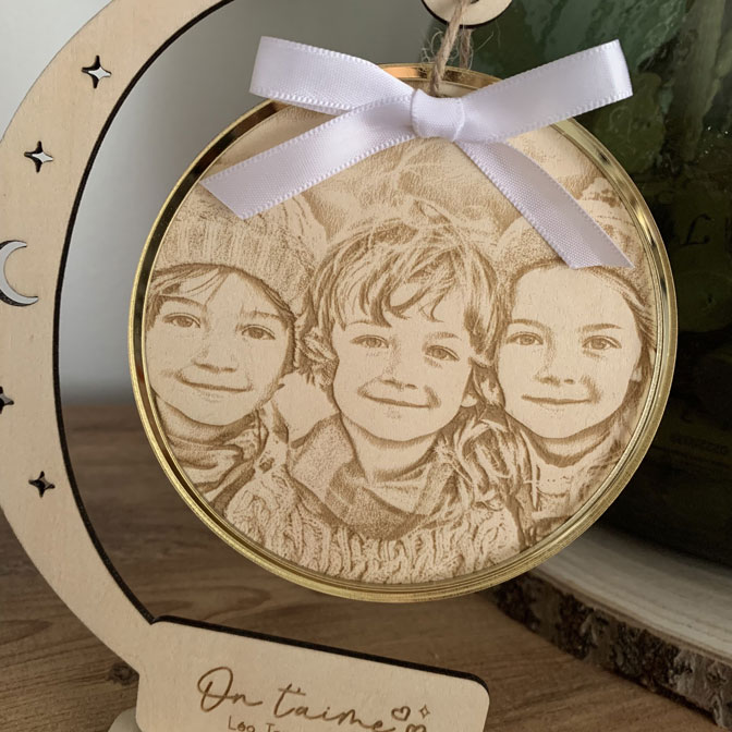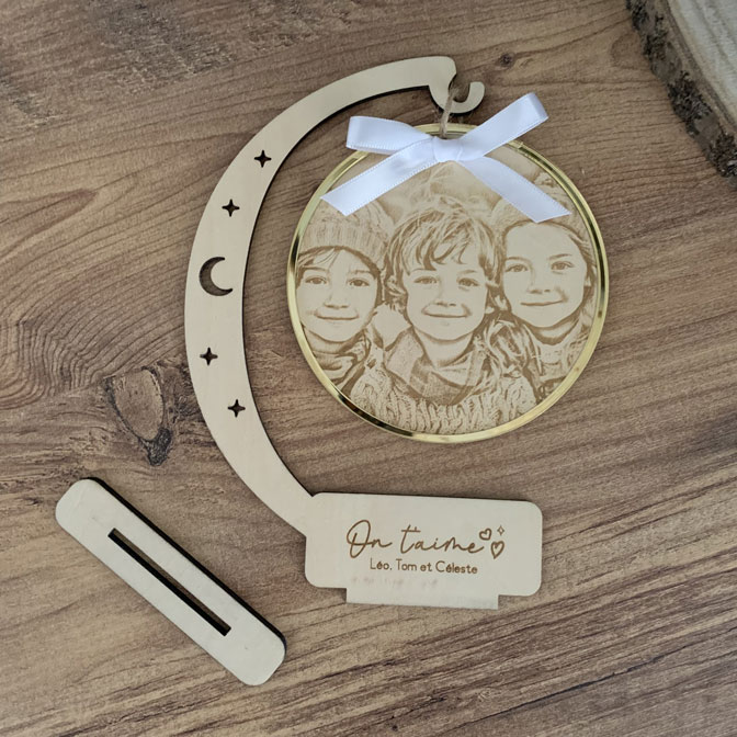 Choisissez entre une photo gravée ou un texte personnalisé (prénom, message, date…) pour créer un cadeau unique et chargé d’amour.
