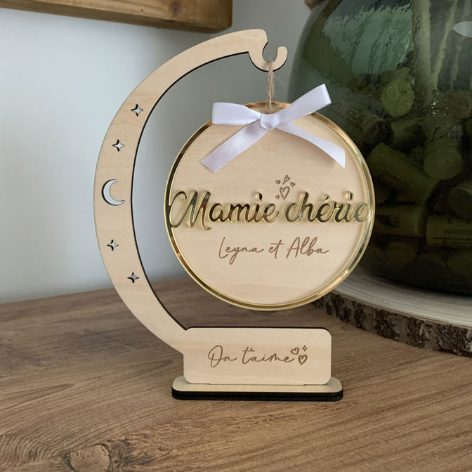 Craquez pour cette décoration à poser personnalisée en bois gravé, idéale pour immortaliser un moment précieux.