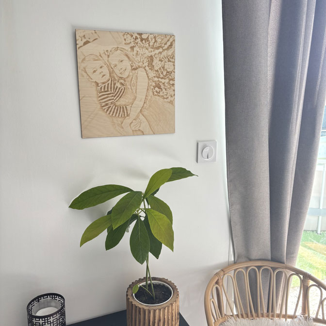Cependant, comme tout objet en bois naturel, il est préférable d’éviter une exposition prolongée à l’humidité ou au soleil direct afin de préserver au mieux la qualité de votre gravure.