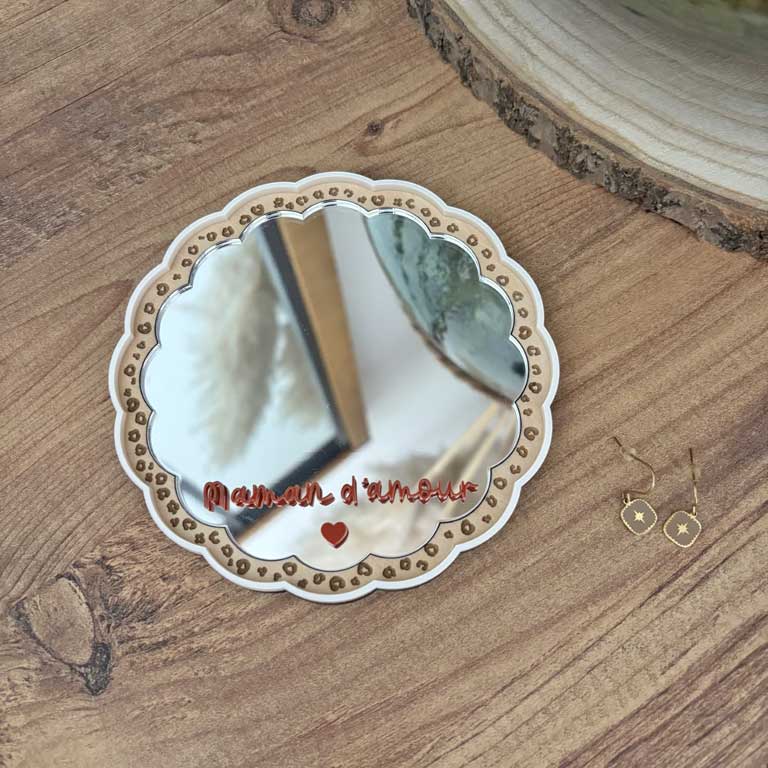 Apportez une touche d’élégance et de douceur à votre intérieur avec ce joli miroir “Maman d’amour” au motif léopard. Son design délicat, agrémenté d’une finition soignée et d’un message plein de tendresse, en fait un objet décoratif unique et plein de charme.