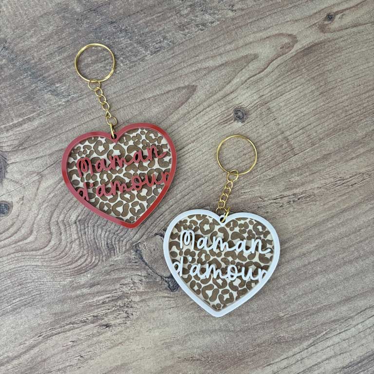 Craquez pour ce magnifique porte-clé cœur “Maman d’amour”, un accessoire à la fois tendance, élégant et rempli d’émotion.